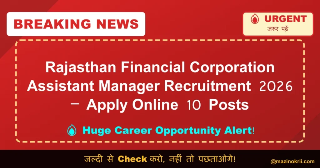 Name of Post: Assistant Manager (Technical & Law) | Total Posts: 10 | Application Mode: Online The Rajasthan Financial Corporation
