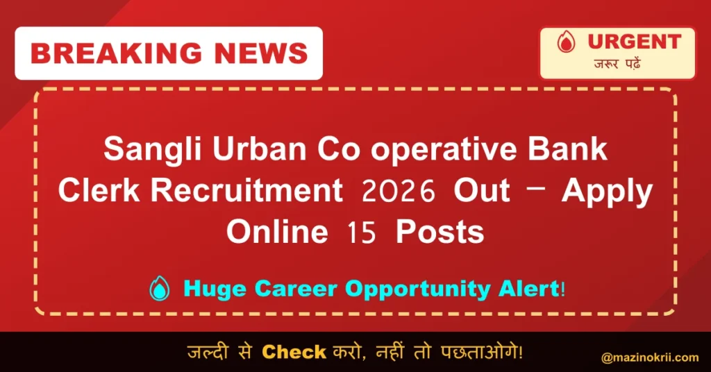 Name of Post: Clerk | Total Posts: 15 | Application Mode: Online The Sangli Urban Co operative Bank Ltd. has