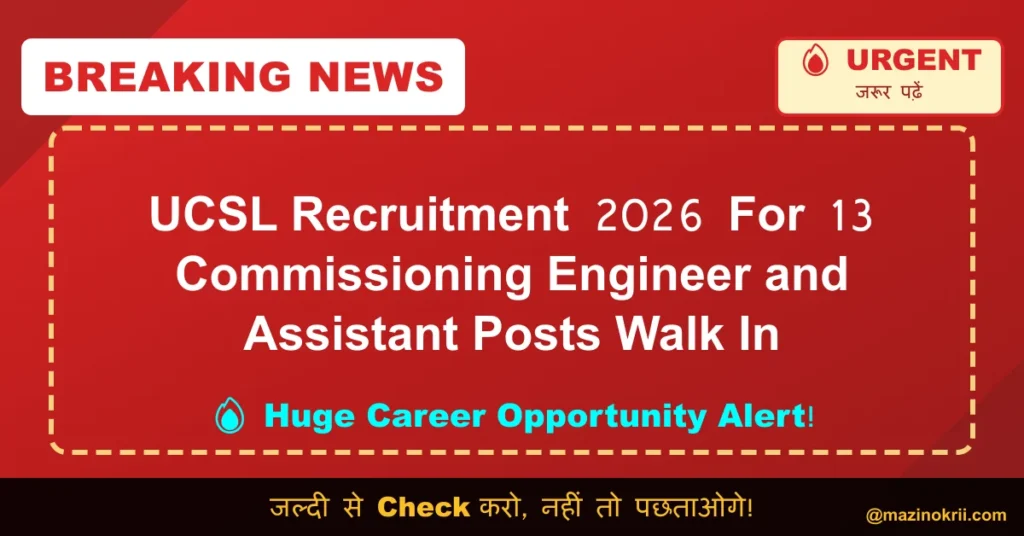 Name of Post: Commissioning Engineer, Commissioning Assistant | Total Posts: 13 | Application Mode: Walk-in The Udupi Cochin Shipyard Limited
