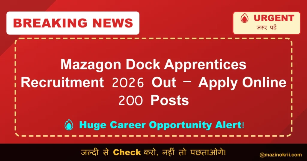 Name of Post: MDL Apprentice Vacancy | Total Posts: 200 | Application Mode: Online Mazagon Dock Shipbuilders Limited (MDL) has