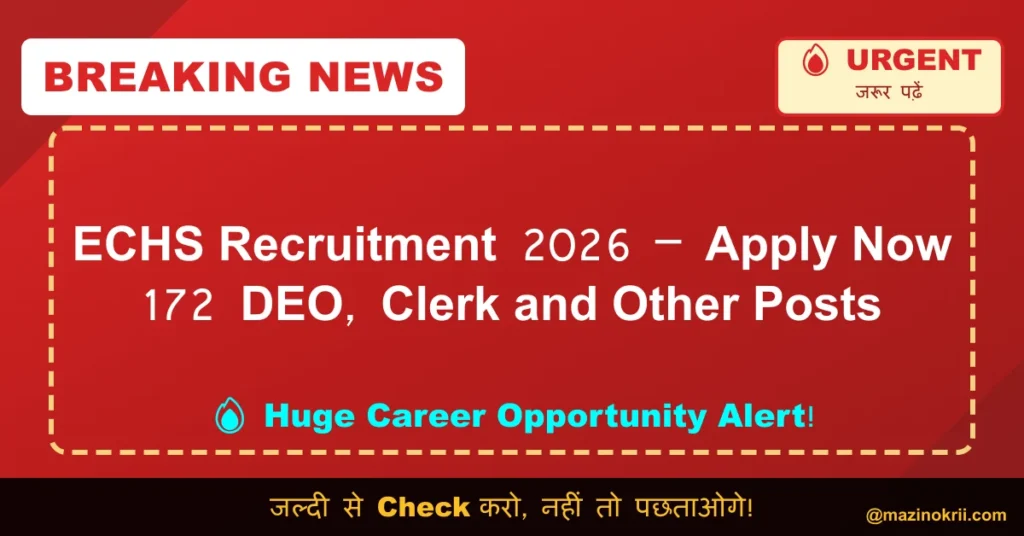 Name of Post: ECHS Various Contractual Posts Recruitment 2026 | Total Posts: 172 | Application Mode: Offline The Ex-Servicemen Contributory