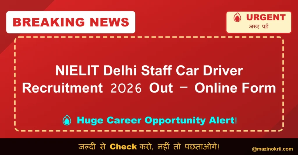 Name of Post: Staff Car Driver (Ordinary Grade) | Total Posts: 04 | Application Mode: Online The National Institute of