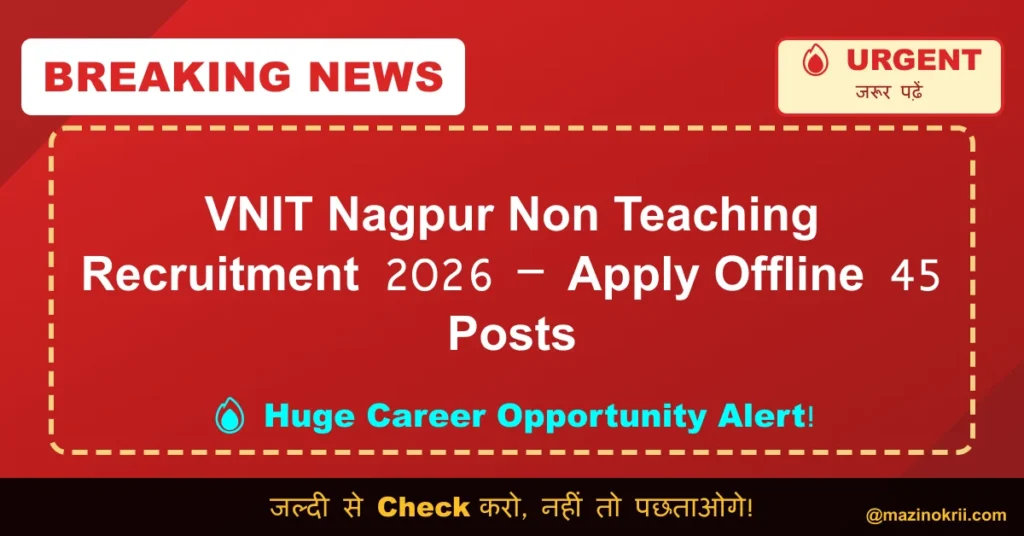 Name of Post: VNIT Nagpur Non-Academic Recruitment 2026 | Total Posts: 45 | Application Mode: Online The Visvesvaraya National Institute