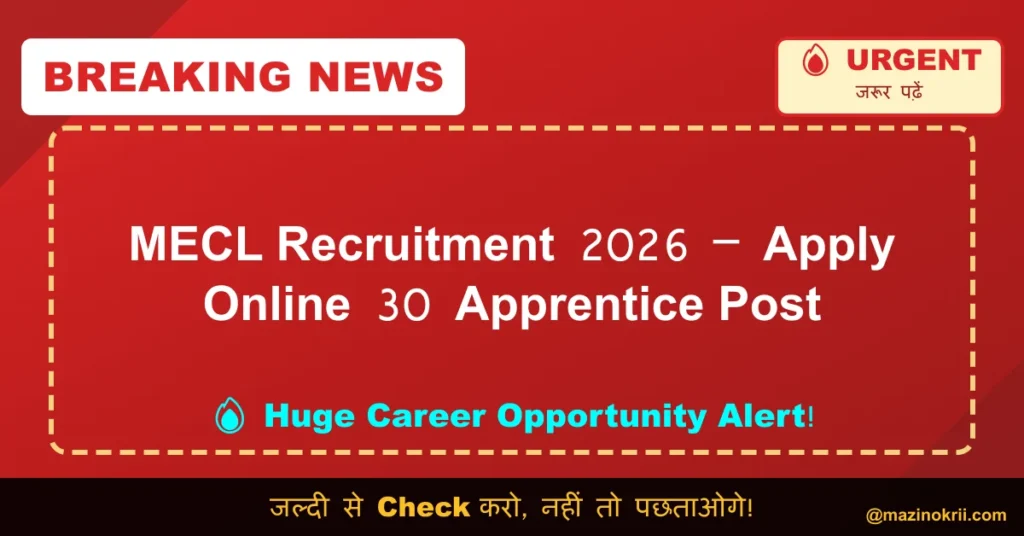 Name of Post: Apprentice | Total Posts: 30 | Application Mode: Online The Mineral Exploration and Consultancy Limited (MECL) has