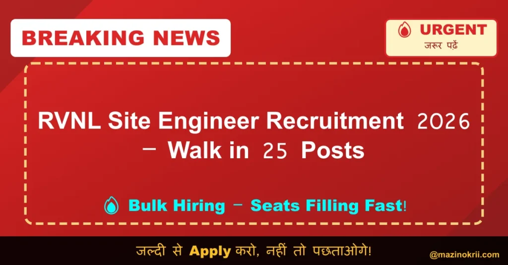Name of Post: Site Engineer (Telecom) | Total Posts: 25 | Application Mode: Walk-in Interview The Rail Vikas Nigam Limited