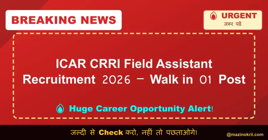 Name of Post: Field Assistant (FA) | Total Posts: 01 | Application Mode: Walk-in-Interview The ICAR – Central Rice Research